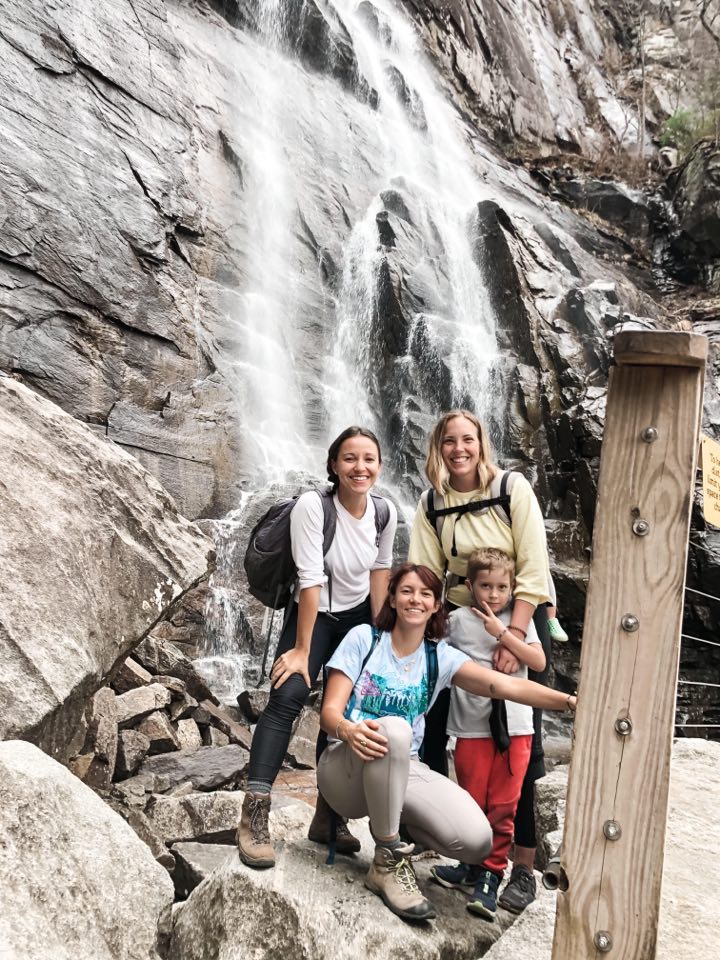 The Hickory Nut Falls trail is 1.4 miles round trip and takes an average hiker about 45 minutes. It’s an out and back and very family friendly!